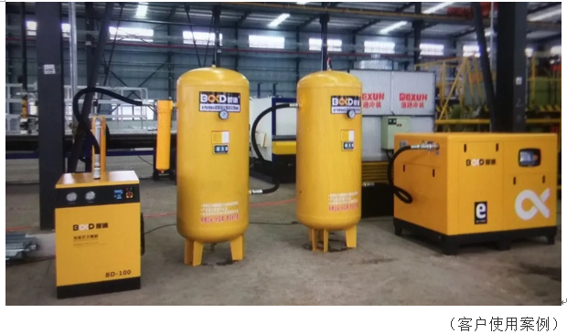② 管道口径:排气管道的管径应不小于空压机机排气口的尺寸,可视压缩空气输送距离的远近适当的加大管径,以减小压损。