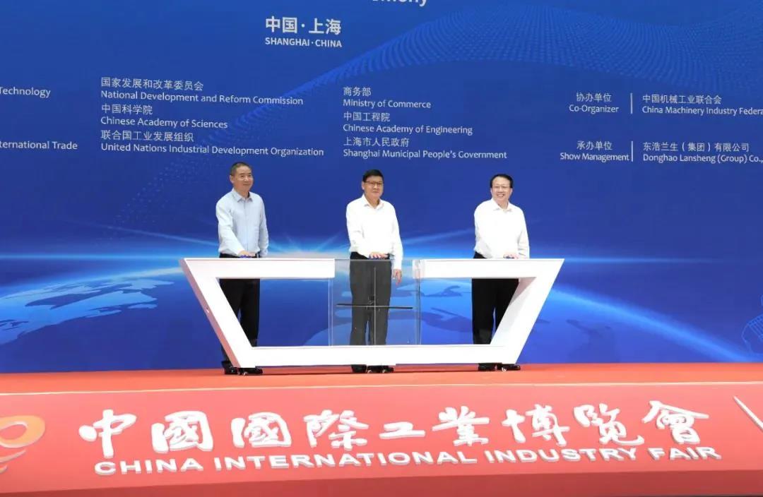 中共中央政治局委员、上海市委书记李强出席开幕式暨颁奖仪式,中国工程院院长李晓红,上海市委副书记、市长龚正,工业和信息化部副部长辛国斌致辞并共同开启第二十二届中国国际工业博览会。